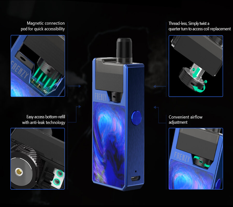 Die Airflow lässt sich verstellen und regelt den Luftzug. GeekVapes Frenzy Kit ist hauptsächlich für die Belange der Backendampfer (MTL) ausgelegt und eignet sich sowohl für alle Erfahrende also auch Neulinge.