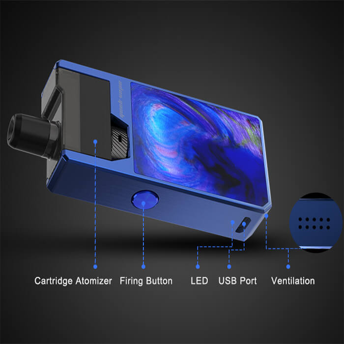 Die hochwertigen Materialien bestehen aus verzinktem Aluminium und Resin und die Maße von 86.1mm x 37mm x 15.7mm machen dieses E-Zigarettenset super kompakt und handlich.