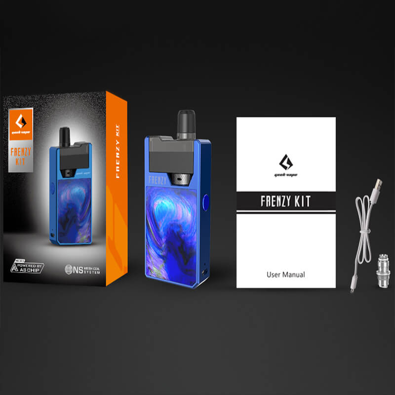 Das Frenzy Kit ist das neueste Pod-System aus dem Hause GeekVape, das über einen verbauten Akku, mit einer Kapazität von 950mAh verfügt. Mit einem simplen Tastendruck auf den Feuertaster bekommt man den aktuellen Batteriestand per LED angezeigt. Die verbrauchte Kapazität kann bei Bedarf via USB mi 1A geladen werden.