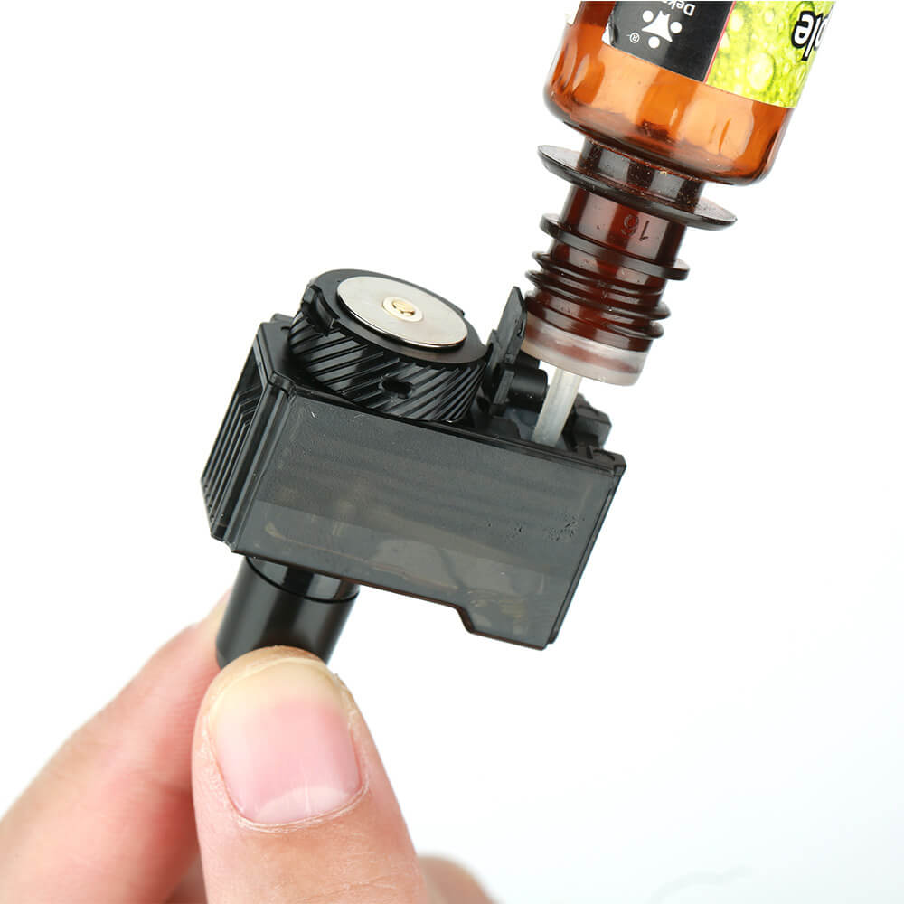 Die Cartridge hat einen 2ml Tankvolumen, welches sich immer wieder von unten mit dem Anti-Leak-System befüllen lässt. Dazu und zum Coil-Wechsel, muss der Pod entnommen werden. Anschließend wird er wieder eingesetzt und magnetisch gehalten.