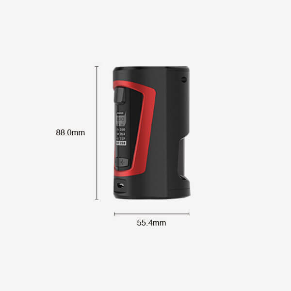 Der Mod ist nur 88mm hoch und 55.4mm breit, so dass er bequem in der Hand liegt und alle Bedien – Taster, sowie der Feurknopf gut erreichbar sind.