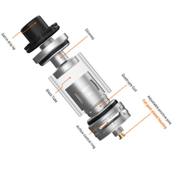 Der Illusion Tank ist einer der wenigen Coil Verdampfer aus dem Hause Geekvape, es handelt sich also nicht um einen Selbstwickler. Der Tank hat ein Füllvolumen von 4.5 ml und einen Durchmesser von 25mm. Die Base des Illusion Tanks besitzt im Gegenzug nur einen Durchmesser von 24mm. Im Lieferumfang des Illusion Tanks befinden sich 2 verschiedene Top Caps. Eine Top Cap mit fest sitzendem kurzen Wide Bore Drip Tip und eine mit 510 Drip Tip Adapter. GeekVape hat für den Illusion Tank 2 verschiedene Verdampferköpfe konzipiert, den i1 Coil mit 0.15 Ohm und einer Wattrange von 50 - 180 Watt und den i4 Coil mit ebenfalls 0.15 Ohm und einer Wattrange von 50 - 260 Watt. Der i1 Coil setzt den Fokus etwas mehr auf Geschmack wohingegen der i4 Coil mehr für das Cloud Chasing ausgelegt ist. Ebenso können im GeekVape Illusion die Coils des SMOK TFV8 verwendet werden.