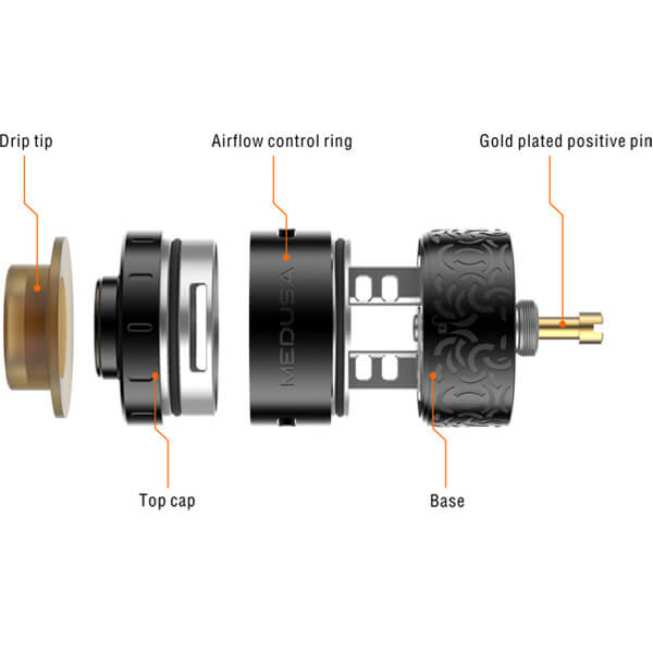 Die elegante, eingefräste Gravur des Verdampfers macht den Medusa RDTA zu einem echten Hingucker.