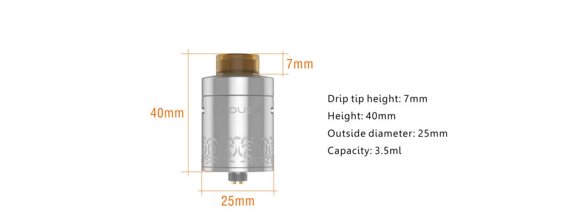 Die großen Ansauglöcher der SideAirflow sorgen für eine geschmacksintensive Aromenentfaltung. Aufgrund des Durchmessers von 25mm bietet der Medusa Reborn RDTA einen geräumigen Platz für größere Wicklungen.
