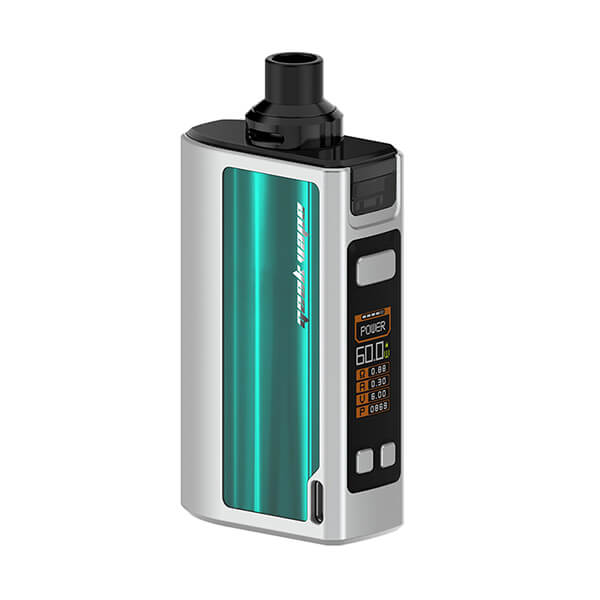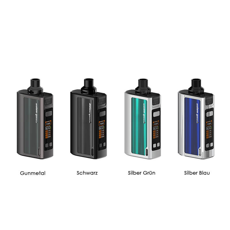 Ein integrierter 2200mAh Akku treibt das Gerät an und schafft eine maximale Ausgangsleistung zwischen 5W-60W. Dabei erstreckt sich der Widerstandsbereich von 0.1 Ohm bis 3.0 Ohm. Es stehen die Modi Power, TC und Bypass zur Verfügung. Über einen USB-C Anschluss kann die Akkukapazität mit 2A rasant zügig wieder geladen werden.