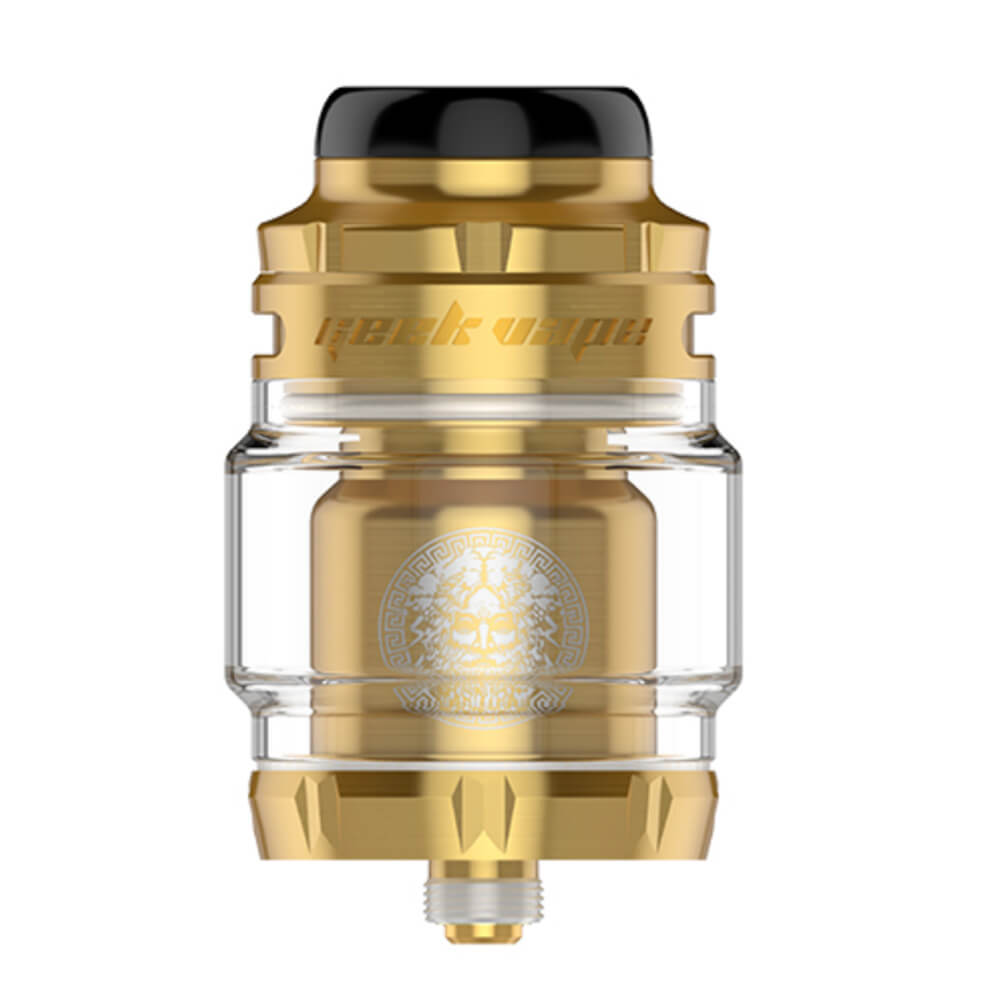 Der Z X2 RTA wurde hochwertig aus Edelstahl und Pyrexglas von GeekVape gefertigt, verfügt über die Maße 47.8mm x 25mm und einem vergoldetem 510er Anschluss. Das Design ist ansprechend und wird in den Farben Schwarz, Silber, Gunmetal und Gold angeboten.