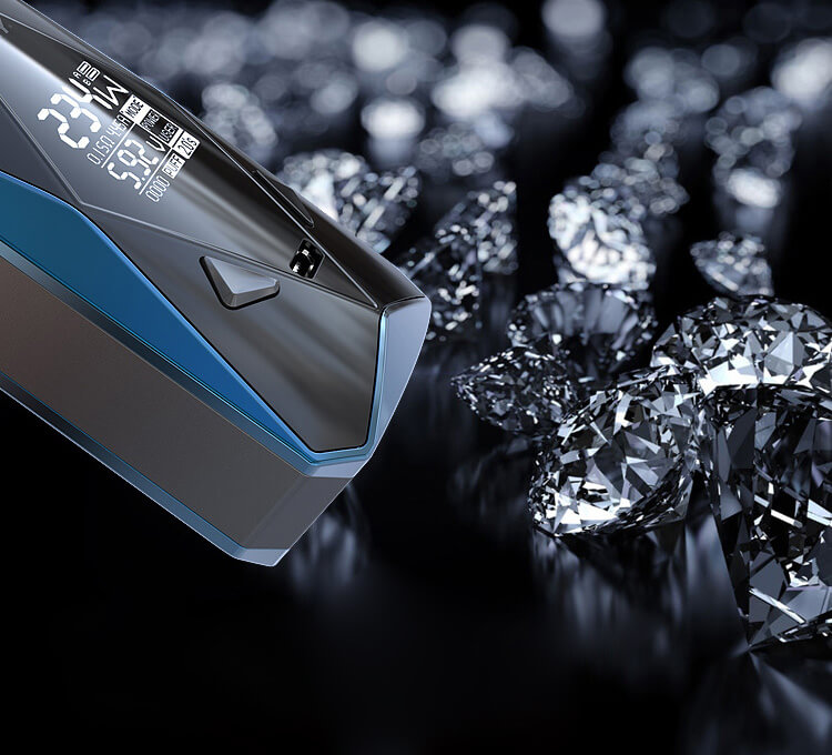 Wie ein geschliffener Diamant wirkt das elegante und zeitlose Äußere des Mods. Selbstverständlich kommt die Performance trotz auffälligem Design nicht zu kurz. Mit zwei 20700er oder 18650er Akkus wird der Betrieb aufgenommen, so dass bis zu stolzen 234 Watt erzielt werden können. Der verbaute IWEPAL Chipsatz, welcher im VW, TC und TCR-Modus arbeitet, ist besonders leistungsstark und beinhaltet zudem diverse Sicherheitssysteme zum Schutz des Mods. Alle Dampf-Infos erhält man von dem großflächigem Bildschirm, der sich auf der Frontseite befindet. Geladen wird über einen USB-Anschluss, mit dem auch die Updates aufgespielt werden können.