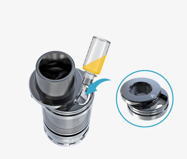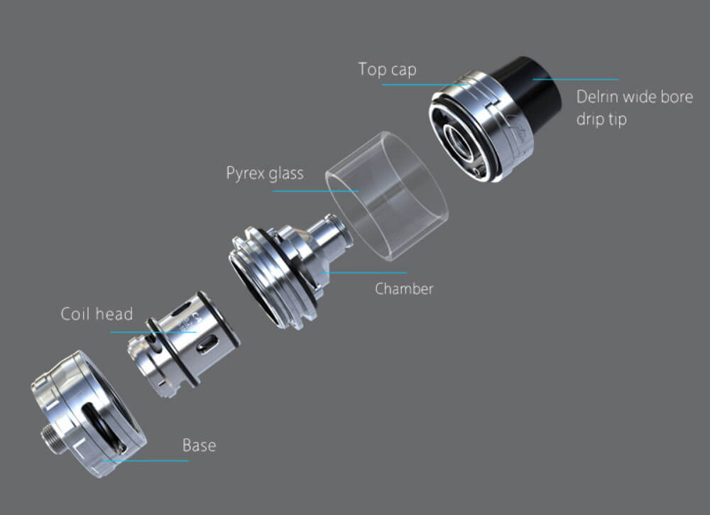 Der Genie PD270 kommt zusammen mit dem Captain S Verdampfer. Das 4ml Volumen wird mit der Topfilling Technik aufgefüllt. Der Captain S Tank verwendet die neuen CA Coils, die nicht wie gewohnt geschraubt, sondern nur noch gesteckt werden müssen. Dies erleichtert den Coilwechsel ungemein. Eine großzügig gestaltete Airflow belüftet die Verdampferköpfe ausgezeichnet und lässt die Luft exzellent zirkulieren. Neu an diesem Verdampfer ist die kleine Rille, die sich zwischen dem Tank und der Base befindet und so positioniert die direkte Wärmeleitung unterbricht, was eine angenehme Dampftemperatur begünstigt.
