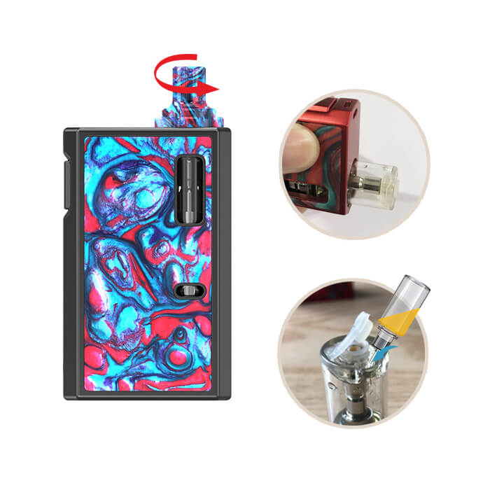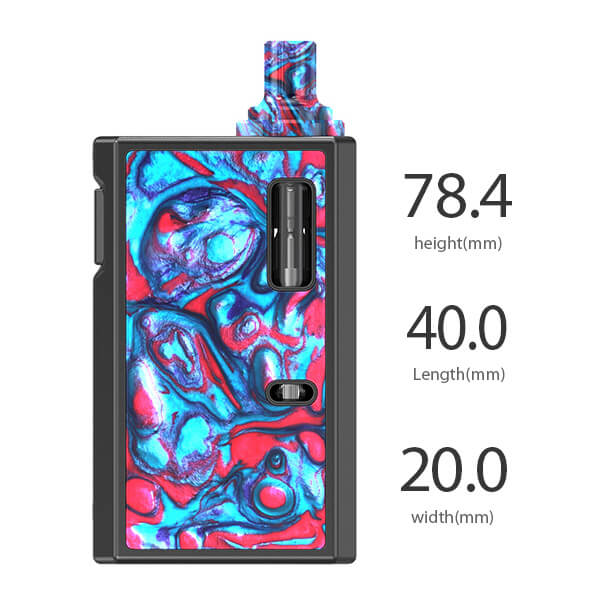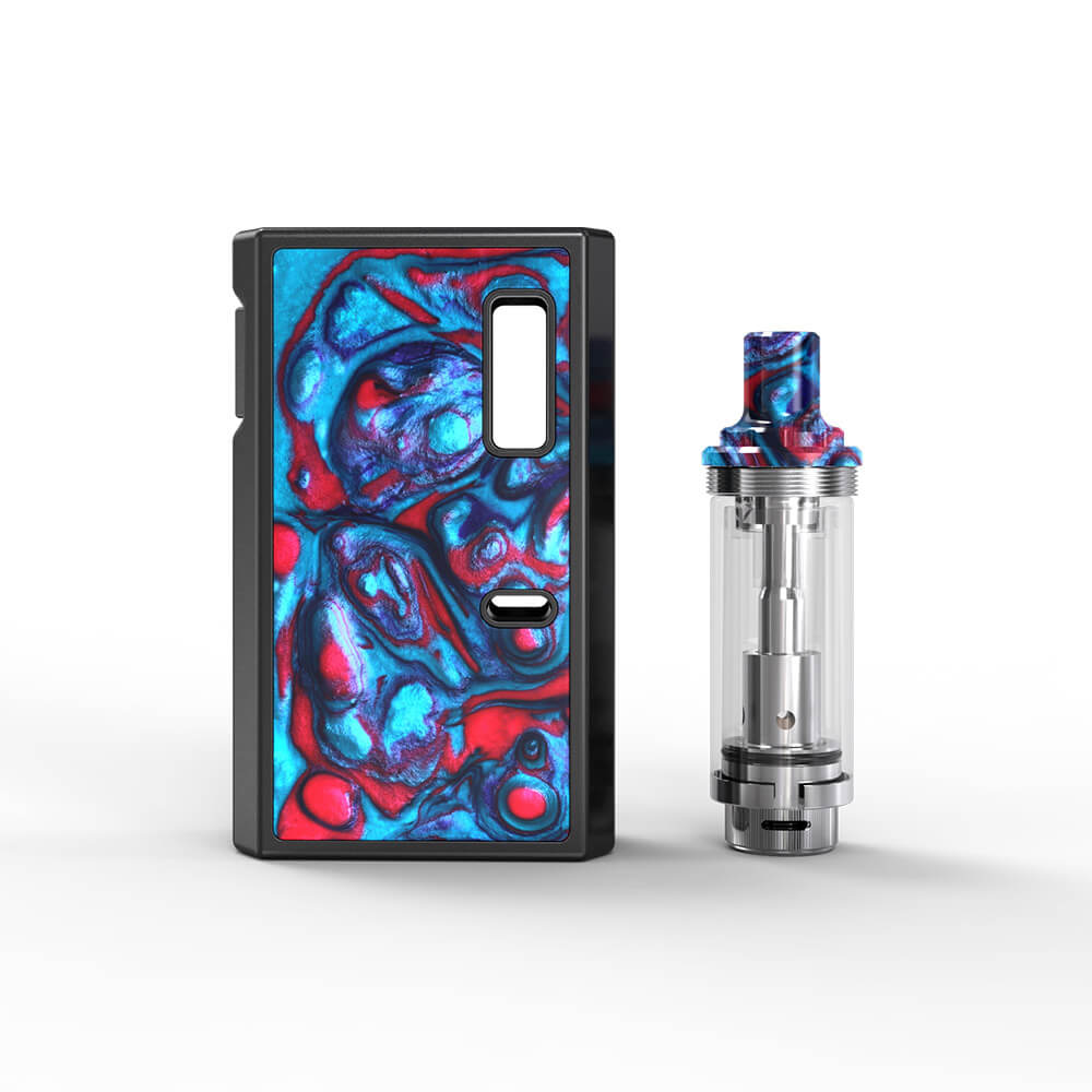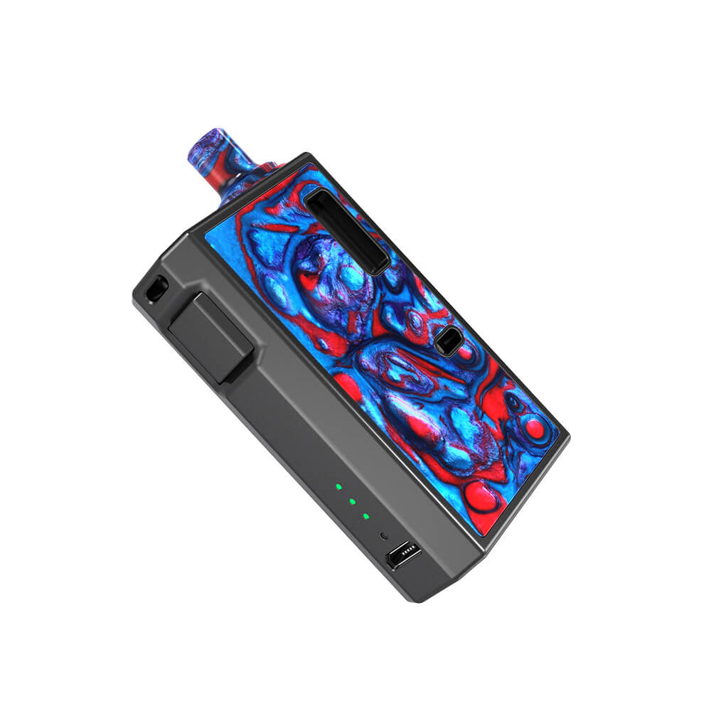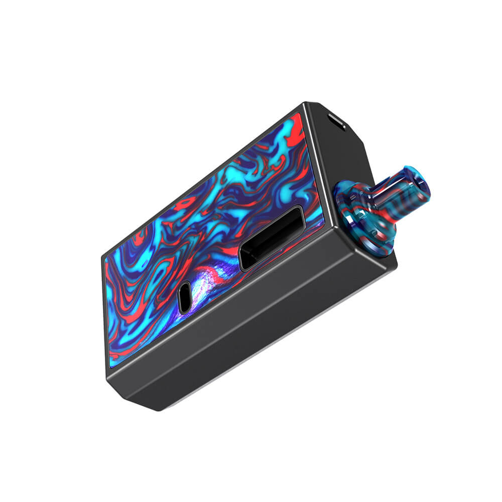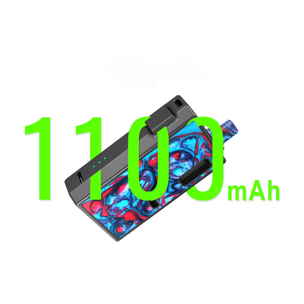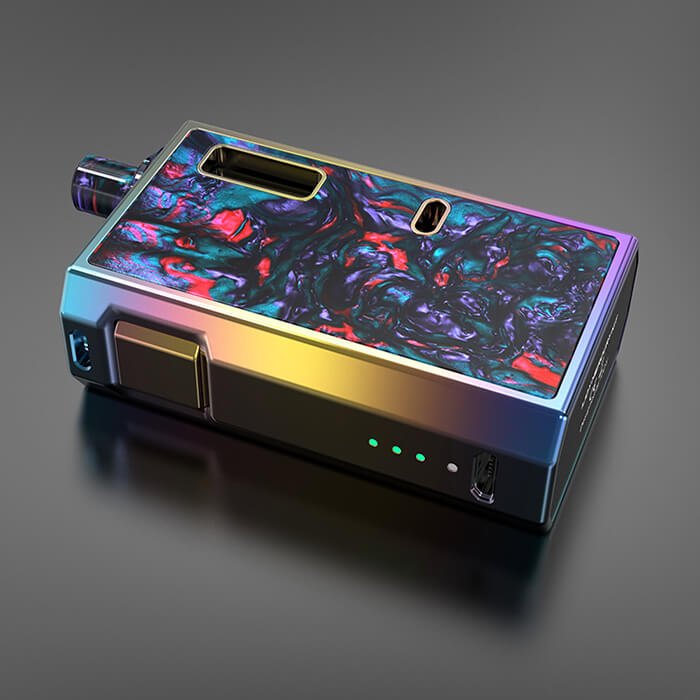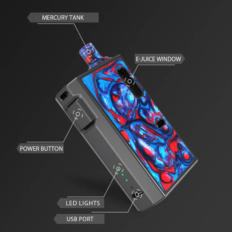 Das Mercury Kit von iJoy wurde mit einer internen 13550er Batterie, mit 1100mAh ausstaffiert. Neigt sich die Kapazität dem Ende zu, kann diese mithilfe des beigefügten USB-Kabels wieder zügig geladen werden. Ein LED-Licht liefert Informationen zum aktuellen Ladestand. Das Set besteht aus einer sauber verarbeiten Zinklegierung mit Edelstahl und ist 78.46mm x 40mm x 20mm groß und kunstvoll mit glänzenden Resinplatten (Harz) designt. Es ist kompakt und anschmiegsam und wird mit einem seitlichen Power Bottom betrieben.