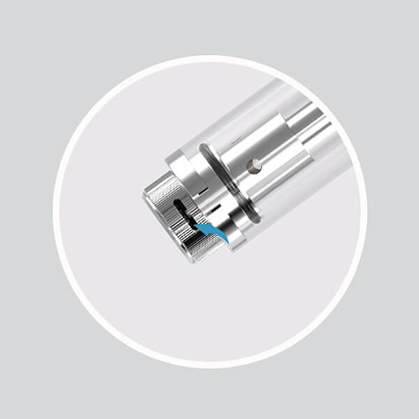 Das Befüllen des 2ml Tanks ist schnell erledigt. Über das Liquidfenster entnimmt man den Füllstand. Zuerst muss das Mundstück entfernt werden, um an den Verdampfer zu gelangen, da dieser zum größten Teil im Mod versenkt und somit geschützt ist. Nach dem Öffnen des Silikon-Stöpsels erscheint das Einfüllloch. Auf ähnlicher Weise können auch die Mercury Coils (1.0 Ohm / 1.2 Ohm) ausgetauscht werden. Zum Regeln der Airflow muss der Tank nicht dem Akkuträger entnommen werden, sondern lässt sich prima von außen regulieren.