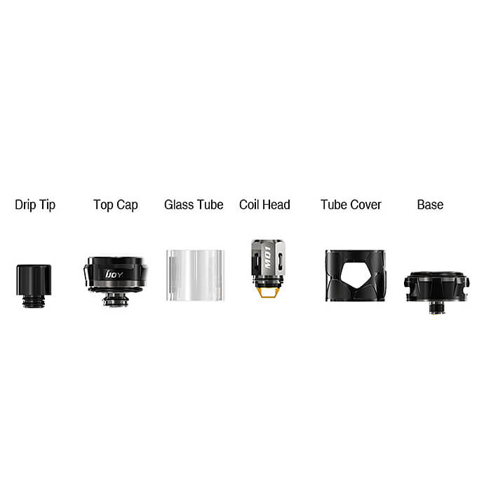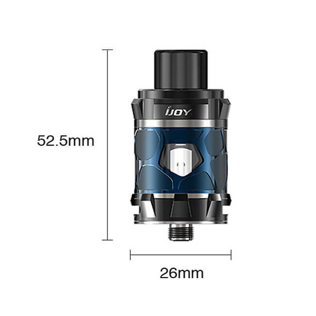 iJoys Mystique Subohm-Tank hat einen Durchmesser von 26mm und ist 52.5mm hoch. Außerdem lässt er sich komplett zerlegen und wurde mit einem 510er Gewinde ausstaffiert.