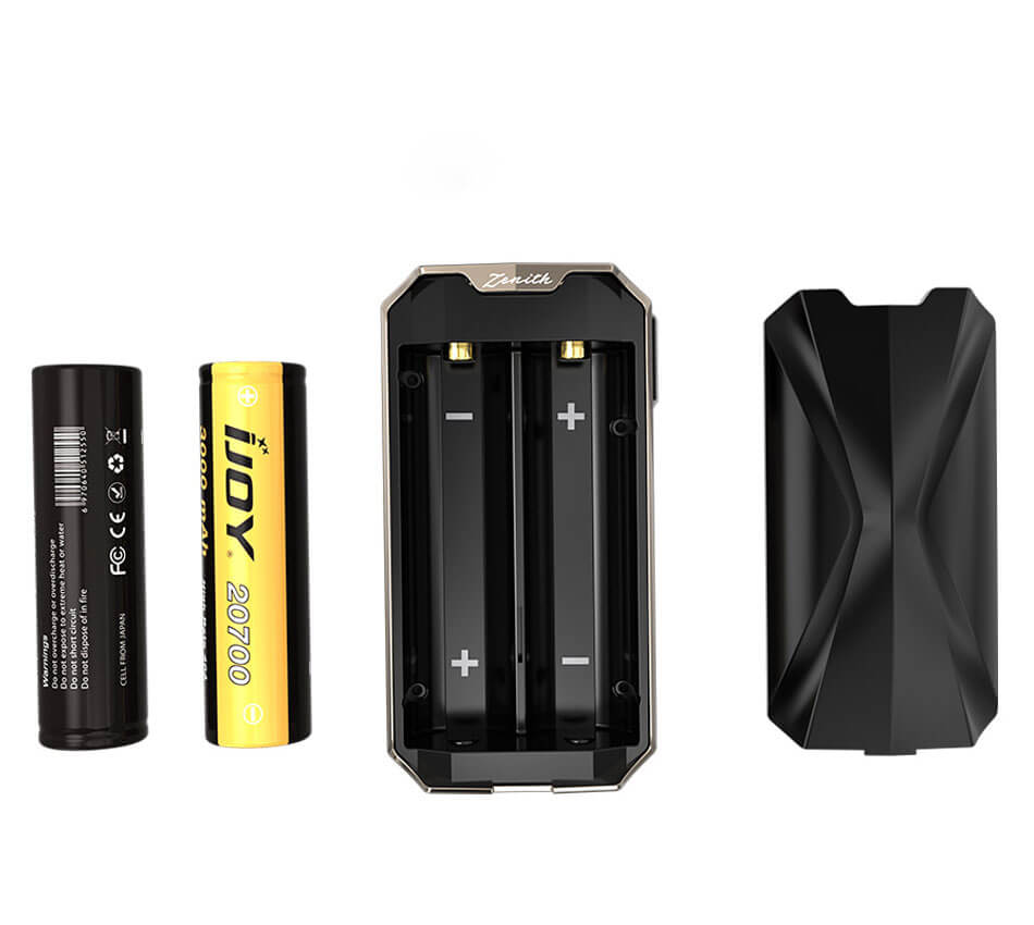 Der ZENITH 3 Mod benötigt einen zusätzlichen Kauf zweier 20700er oder 18650er Batterien um den Betrieb aufnehmen zu können und erreicht so einen max. Watt - Wert bis 360W. Im Inneren des Mods verbirgt sich der IWEPAL Chipsatz, mit dem in einer Feuergeschwindigkeit von wenigen Millisekunden gedampft werden kann, ohne Verzögerung. Außerdem liefert der Chip einige Sicherheitssysteme. Mittig befindet sich ein großer, drehbarer Knopf, mit dem in 360° eine 16 - stufige Spannungseinstellung (2.7V – 7.2V) bestimmt werden kann.
