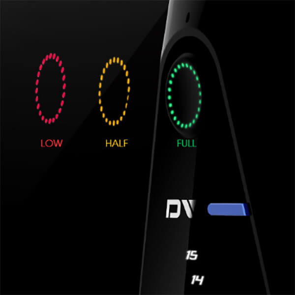 Ausstaffiert wurde er mit einem verbauten 500mAh Akku, inklusive Akku-Schutzsysteme. Eine dreifarbige Ladestandsanzeige vermittelt deutlich die verbleibende Leistung. Geladen wird das Kit über den freizugänglichen USB-Port.