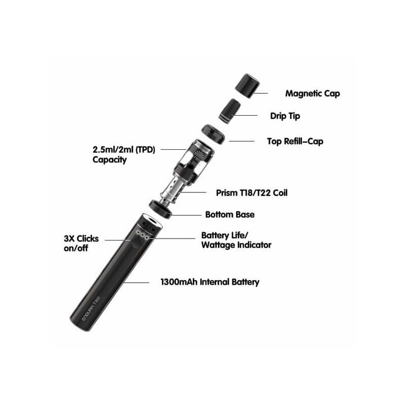 Der wechselbare T18 Prism Verdampferkopf verfügt über einen Widerstand von 1.5 Ohm und ist für das Backendampfen (MTL) bestens geeignet. Die Airflow ermöglicht einen personalisierten Luftzug und kann stufenlos geregelt werden.
