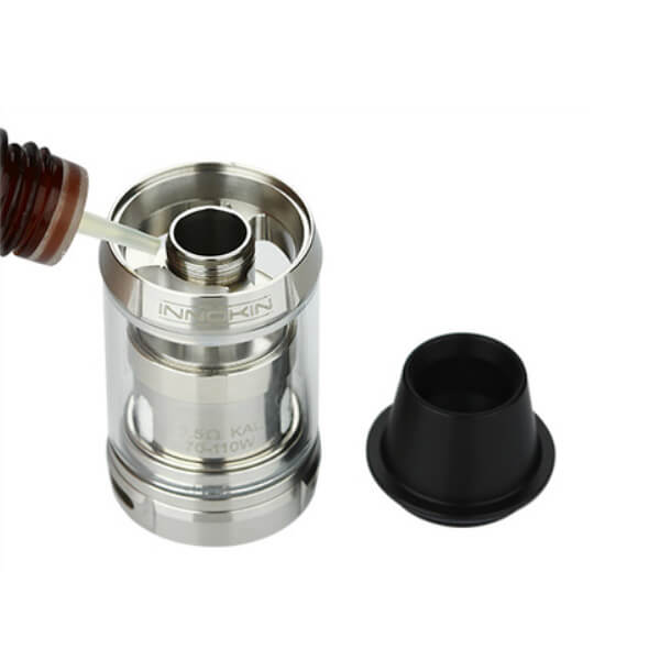 Innokins neuestes Werk ist der Scion Tank, der über einen 3.5ml Füllvolumen verfügt. Über das Top – Fill – System wird das Liquid in den Tank gegeben. Diese ist eine altbewerte, schnelle und saubere Methode, die stets beliebt ist.