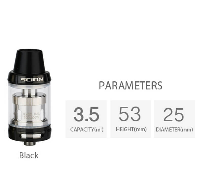 Genutzt wird der Scion Tank mit den eigens entworfenen Scion Coils 0.28 Ohm – 0.5 Ohm (70W – 200W). Viel Power mit viel Geschmack.