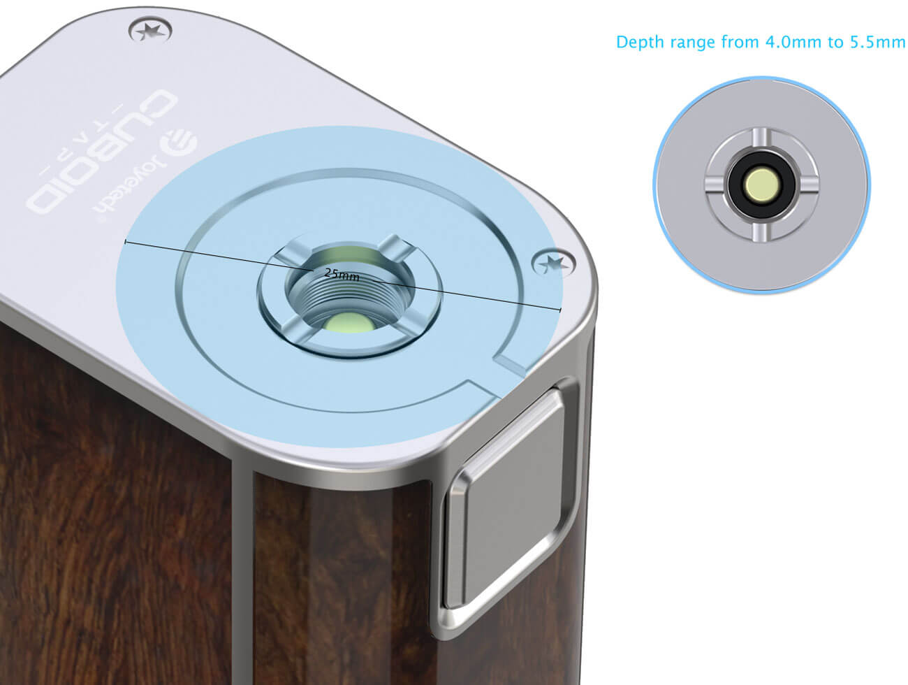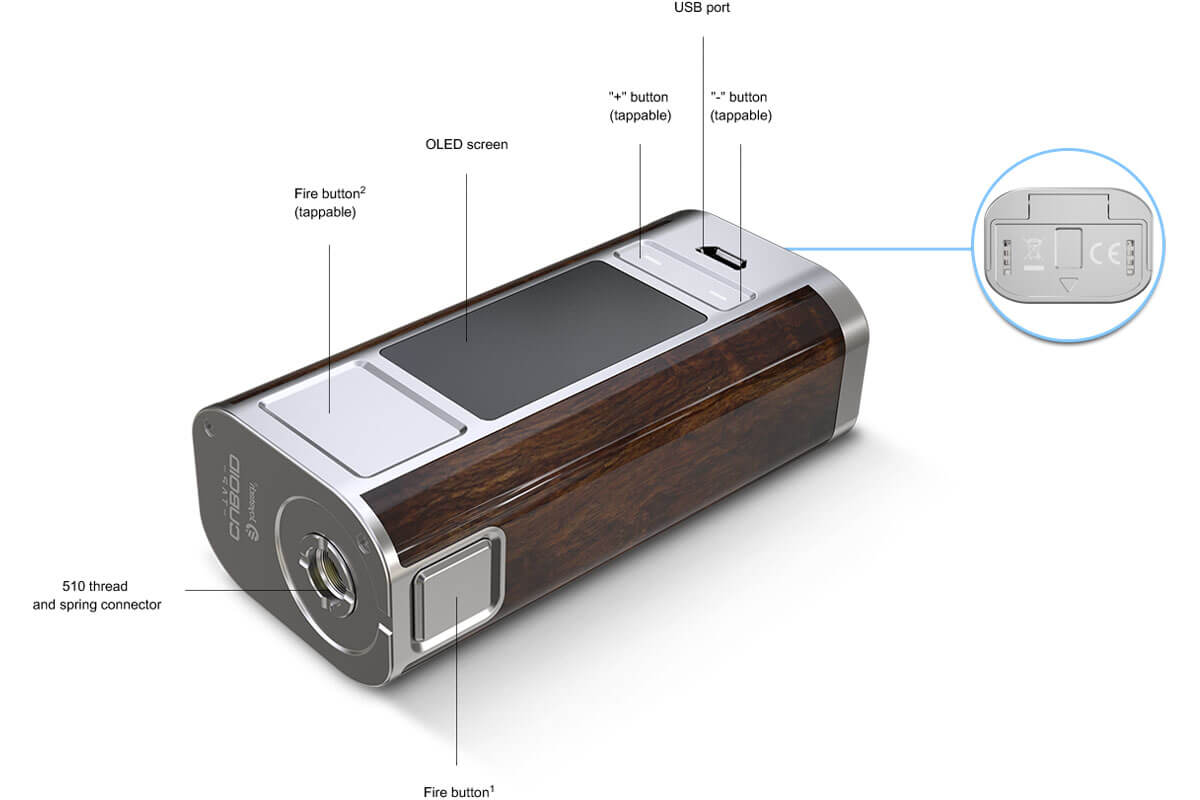 Als weiteren Zusatz bietet der CUBOID TAP Akkuträger eine Stealthfunktion, eine Preheat Funktion sowie eine Bypass Funktion. Die Preheat Funktion ermöglicht das einstellbare Vorglühen bei dickeren und trägeren Wicklungen, damit der Geschmack bereits von der ersten Zugsekunde auch bei geringeren Wattleistungen voll ausgekostet werden kann.