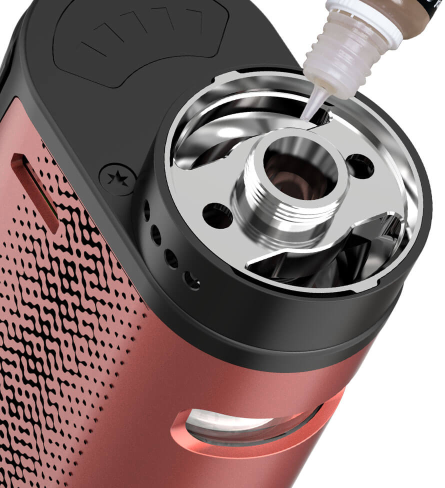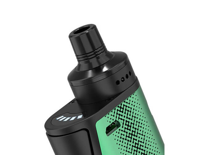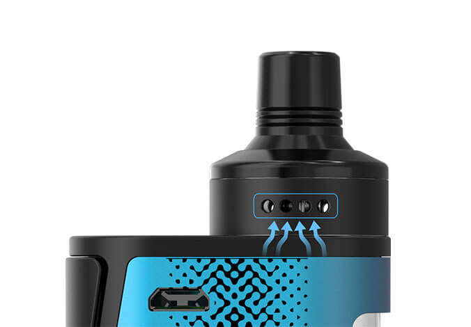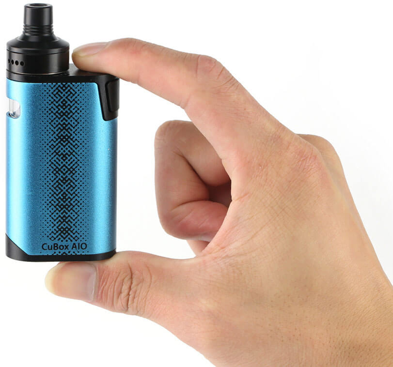 Das Joyetech CuBox AIO Starter-Kit ist ein All-in-One-Gerät und integriert gekonnt einen festverbauten 2000mAh Akku sowie einen 2ml Liquidtank und bedient 50W max. Output. Über ein 2A Schnellladesystem ist das Set zeitnah wieder einsatzbereit. Darüberhinaus verfügt es über ein elegantes und optisch ansprechendes Design und ist mit einer Gesamthöhe von 87mm handlich und für unterwegs geeignet. Desweiteren staffierte Joyetech die CuBox Aio mit einem Topfilling-System, sowie einer Top Airflow aus. TopCap öffnen, Liquid in die dafür vorhersehenden Löcher nachfüllen, fertig. Auf der Oberseite der CuBox AIO befindet sich eine fächerförmige Anzeige, welche beim Betätigen des Feuerknopfes leuchtet. Die Anzahl der Balken gibt Auskunft über den derzeitigen Akkustand. Für eine recht angenehme Zugkraft sorgt ein vorinstallierter 0.6 Ohm ProC-BF Coil.