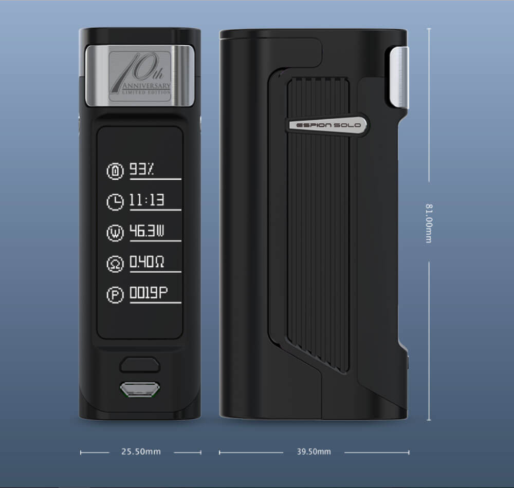 Joyetech feiert sein 10. Jähriges Jubiläum und anlässlich zu diesem Freudentag wurde eigens der ESPION Solo Mod entwickelt.