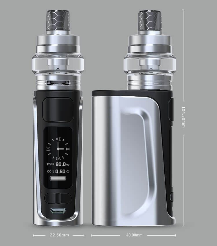 Der eVic Primo Fit Mod ist schlicht aber sehr stilvoll gestaltet und in 4 unterschiedlichen Farben erhältlich. Die kompakte Größe lässt ihn anschmiegsam in der Hand liegen und die Bedienungs – Knöpfe sind gut erreichbar, so dass sich das Handling besonders leicht gestaltet. Ein eingebauter 2800mAh Akku bringt den Akkuträger zum Laufen. Dabei kann ein maximaler Wert von bis zu 80 Watt erzielt werden und im Power / RTC / TC (Ni, Ti, SS316) / TCR (M1, M2, M3) Modus genutzt werden. In dem eVic Primo Fit Mod wurde gekonnt ein 0.96 Zoll OLED – Display eingelassen. Auf diesem lassen sich mühelos und gut strukturiert alle Werte ablesen, während die Bedienung selbsterklärend ist. Der leere Akku wird mittels des 2A Schnellladesystems geladen. Über selbigen USB Port lässt sich auch stets neueste Firmware installieren, damit der Mod immer auf dem neuesten Stand ist.