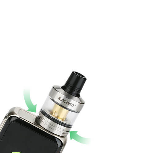 Der EXCEED D22 Verdampfer von Joyetech besteht aus Edelstahl und Borosilikatglas und ist hochwertig verarbeitet. Am unterem Ende wurde die Airflow Control angebracht um den Luftzug nach eigenen Vorlieben zu konfigurieren. Durch die abschraubbare TopCap kann der Tank von oben befüllt werden. Der Tank hat ein Fassungsvermögen von 2 ml, kann jedoch nach Bedarf auf 3.5 ml erhöht werden. Dafür steht die mitgelieferte Kaminverlängerung zur Verfügung. Um eine Langlebigkeit zu begünstigen, kann der Verdampfer in alle Einzelteile zerlegt und anschließend gereinigt werden. Ein 510er Anschluss ermöglicht die Anbringung auf etlichen Box-Mods. Joyetech rüstet den EXCEED D22 auch mit neuen, dazugehörigen Verdampferköpfen aus. Sie können eine Spannung von 0.5-1.2 Ohm erreichen, wordurch sie Liebhaber des DL - und MTL Dampfens gleichermaßen bedenken. Der EXCEED D22 Verdampfer ist relativ schlicht und in den Farben Schwarz, Silber, Rot, Gelb und Lila zu erwerben.