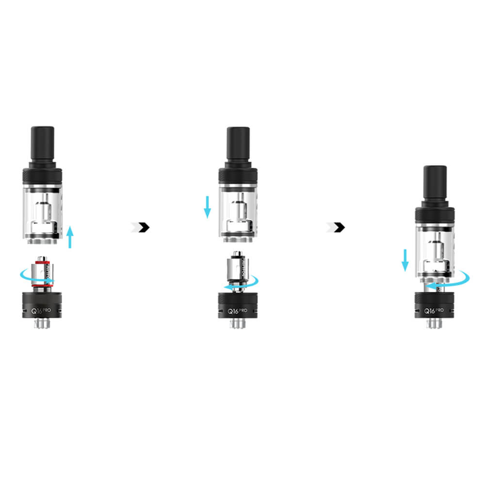 Optimal ergänzt wird der Compact 16 Mod mit dem Q16 Verdampfer, der ein von oben zu betankendes 1.9ml Füllvolumen mitbringt. Schnell und benutzerfreundlich können die OCC 14 / 16 Verdampferköpfe ausgetauscht werden. Diese liefern ein ausgezeichnetes MTL-Vergnügen. Mit der Bottom Airflow wird wunschgemäß der Luftstrom reguliert.
