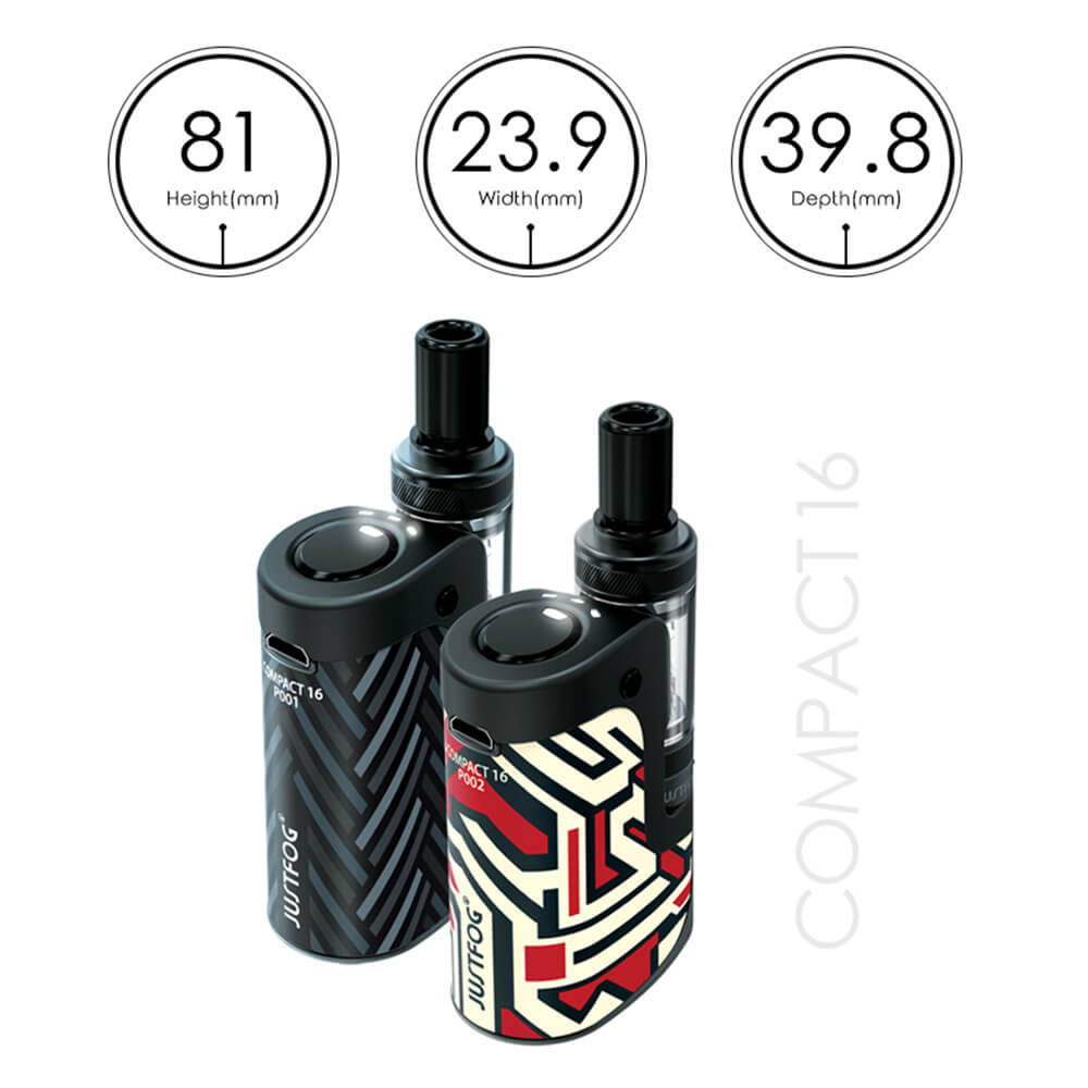 Das Compact 16 Kit von Justfog wird aus dem Compact 16 Mod und dem Q16 Verdampfer kombiniert und bildet die perfekte Einheit für ein entspanntes und komfortables Vapen.