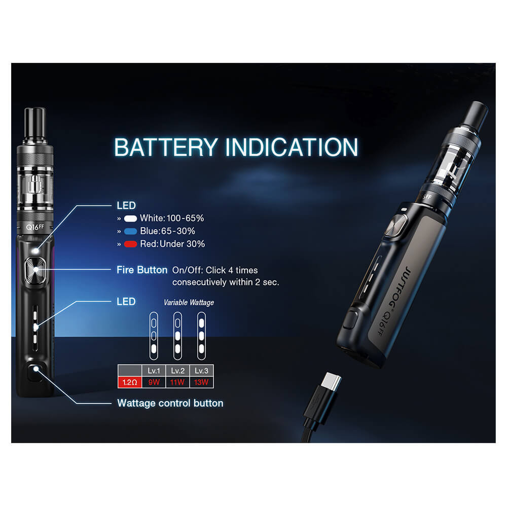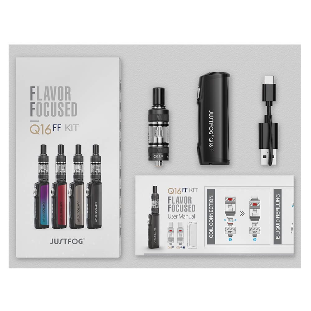 Justfog bietet mit dem Q16 FF Kit ein handliches und einfach zu handhabendes Gerät, welches auf das klassische MTL (Backendampfen) ausgelegt ist.
