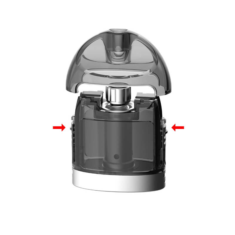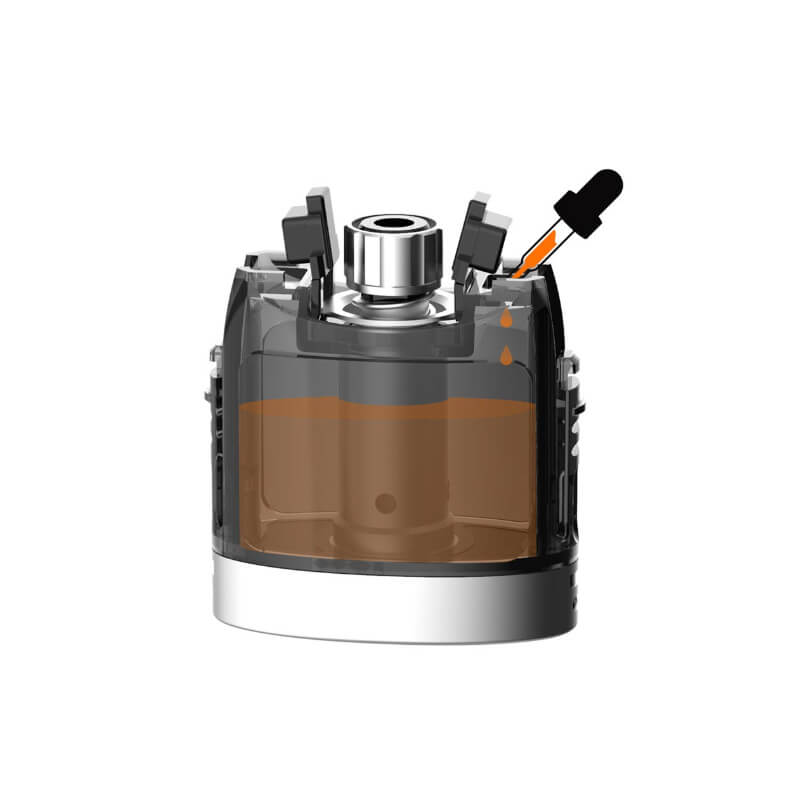 Mit dem Pod erhält man zwei Dampfmöglichkeiten. Der 1.2 Ohm Coil, mit regulärer Wicklung, liefert ein ausgezeichnetes MTL-Vergnügen (Backendampfen) und mit dem 0.6 Ohm Mesh Coil kommen DL-Fans voll auf ihre Kosten. Das Austauschen der Verdampferköpfe ist schnell erledigt. Die Top Cap des Pods wird von zwei Klammern an der Seite gehalten und muss vorher entfernt werden. Anschließend kann der Coil-Wechsel von oben erledigt werden.