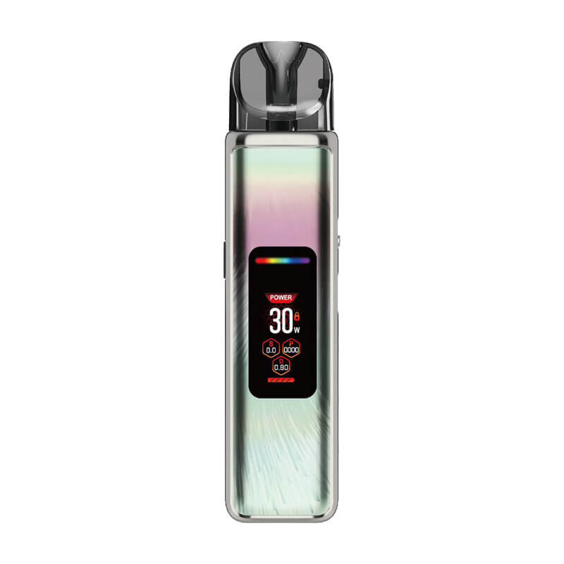 Im Inneren verbirgt sich ein integrierter 1000mAh Akku, der dank des USB-Typ-C-Anschlusses schnell und effizient mit 5V/1A aufgeladen werden kann. Mit einer Ausgangsleistung von 5 Watt bis 30 Watt und einer maximalen Ausgangsspannung von 4.2 Volt bietet das Gerät ausreichend Power, um den Bedürfnissen von MTL- und RDL-Dampfern gerecht zu werden. Der Widerstandsbereich von 0.3 Ohm bis 3.0 Ohm ermöglicht die Nutzung der Dampfmodi VW/Power und Smart-VW. Die Bedienung ist intuitiv und flexibel. Es kann entweder über die Zugautomatik oder den seitlichen Feuerbutton aktiviert werden. Über den Feuerbutton werden auch sämtliche Einstellungen vorgenommen, wobei eine 5-Klick-Funktion das Gerät ein- und ausschaltet, eine 4-Klick-Funktion den Button sperrt oder entsperrt und eine 3-Klick-Funktion die Leistungseinstellung ermöglicht. Zudem kann mit einem 2-Klick das Menü aufgerufen werden. Das 0.96-Zoll-TFT-Farbdisplay informiert übersichtlich über Modus, Akkustand, Leistung, Widerstand, Zugdauer und Puff-Counter, der manuell zurückgesetzt werden kann. Drei verschiedene Display-Themen sowie sieben unterschiedliche Farbschemen bieten individuelle Anpassungsmöglichkeiten. Ein zusätzlicher LED-Streifen mit drei wählbaren Lichtmodi rundet die optische Individualisierung ab und kann bei Bedarf auch deaktiviert werden.