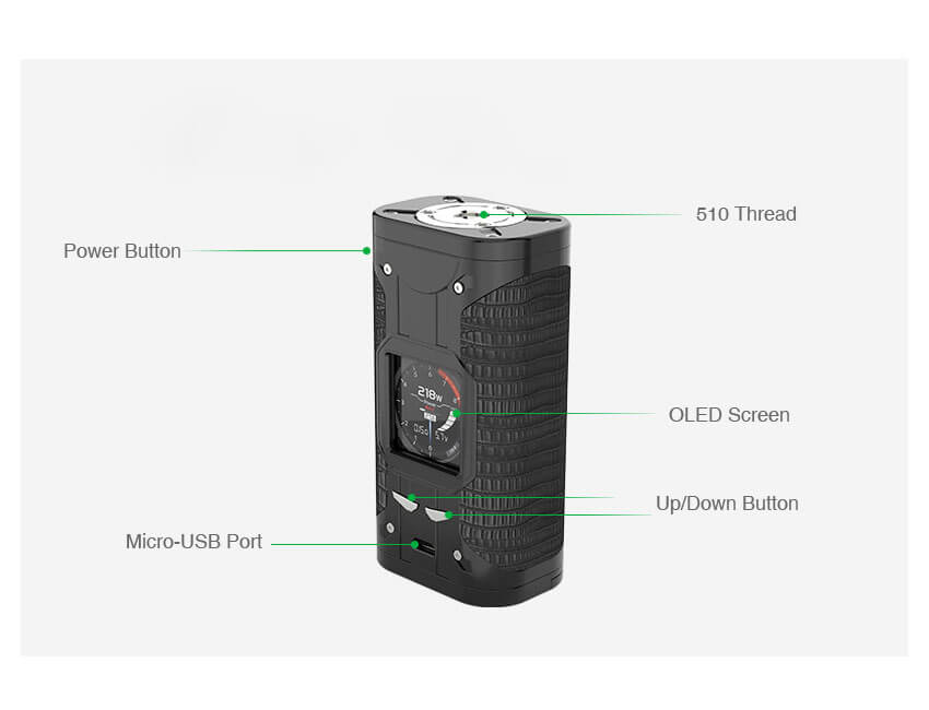 Mit bis zu 218 Watt maximal kann der Mod mit einer Geschwindigkeit von 0.015 Sekunden betrieben werden, wozu 2 separat erhältliche 18650er Akkus verwendet werden müssen. Smoant hat mit dem beachtlichen Cylon Akkuträger sein Sortiment erfolgreich erweitert.