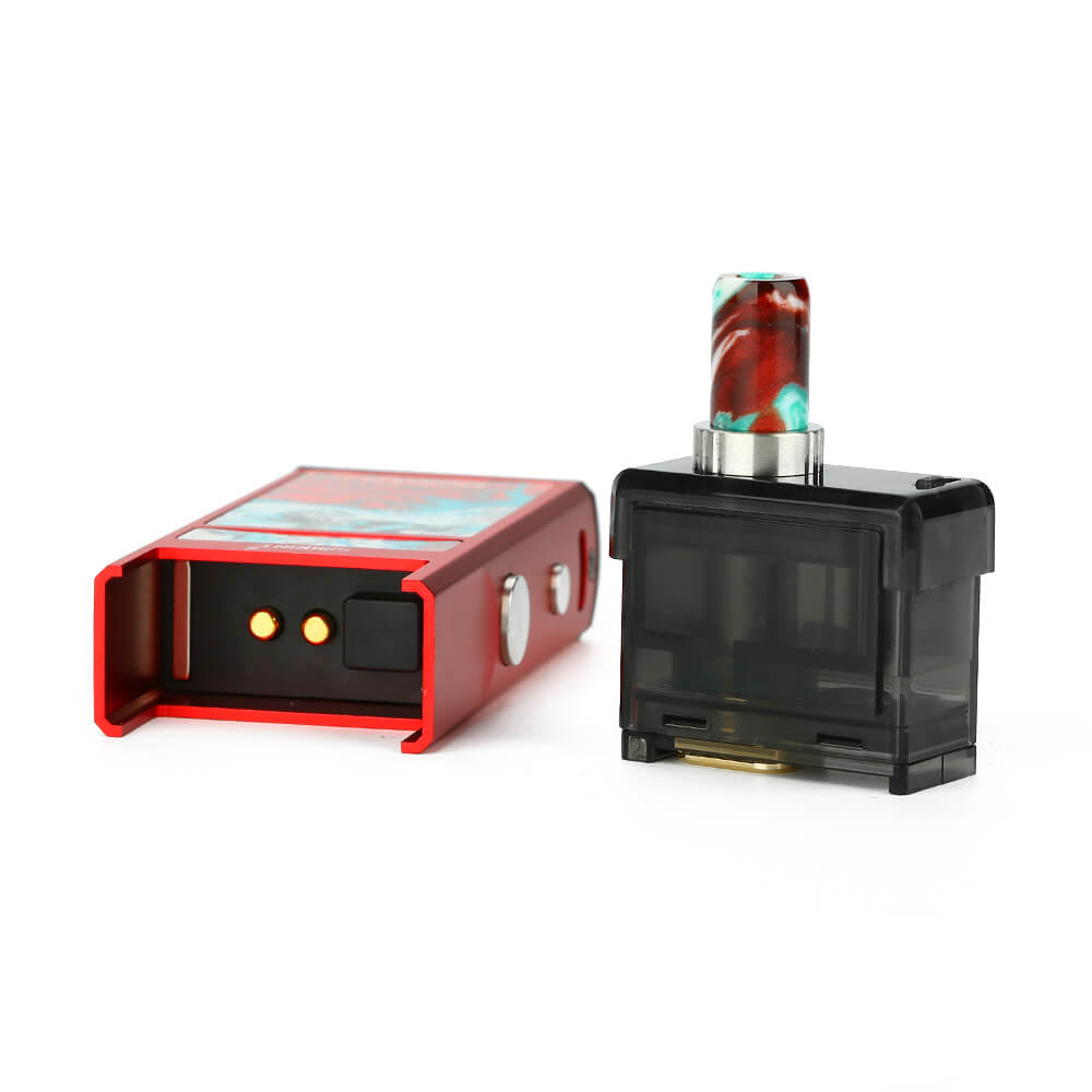 Der Pod wird magnetisch befestigt. Das besondere an der Cartridge ist, dass die Verdampferköpfe nicht fest sind sondern ausgetauscht werden können. Die Coils DTL-Mesh 0.6 Ohm (20W-25W), MTL-Ni80 1.4 Ohm (10W-13W) und ein RBA-Coil können verwendet werden.