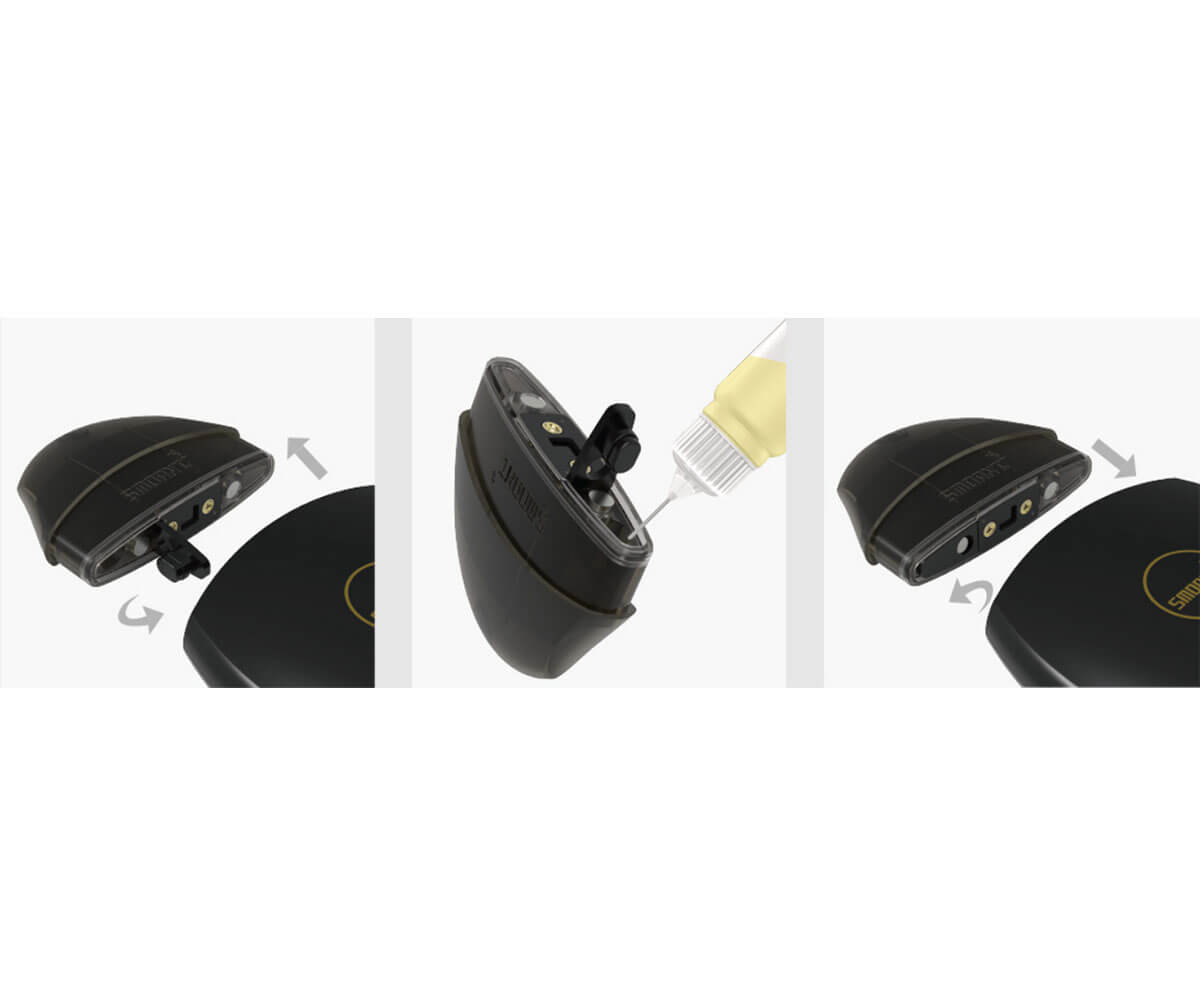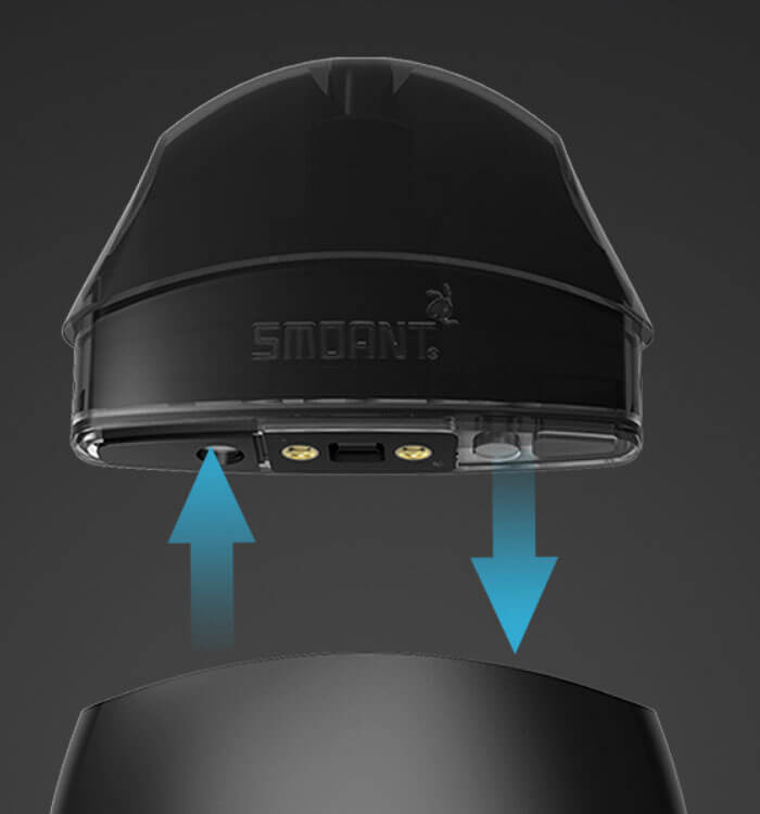 Zum Auffüllen der Cartridge muss diese vom Mod abgenommen und der Verschluss – Stöpsel geöffnet werden. Das Pod – System empfiehlt sich besonders für Liquids mit einem hohen Gehalt an Nikotin – Salzen. Nach dem Auffüllen den Stöpsel gut schließen und die Patrone wieder einsetzen. Ein integrierter Verdampferkopf mit 1.3 Ohm befindet sich im Pod, so dass die Bedürfnisse der Backendampfer voll erfüllt sein dürften.