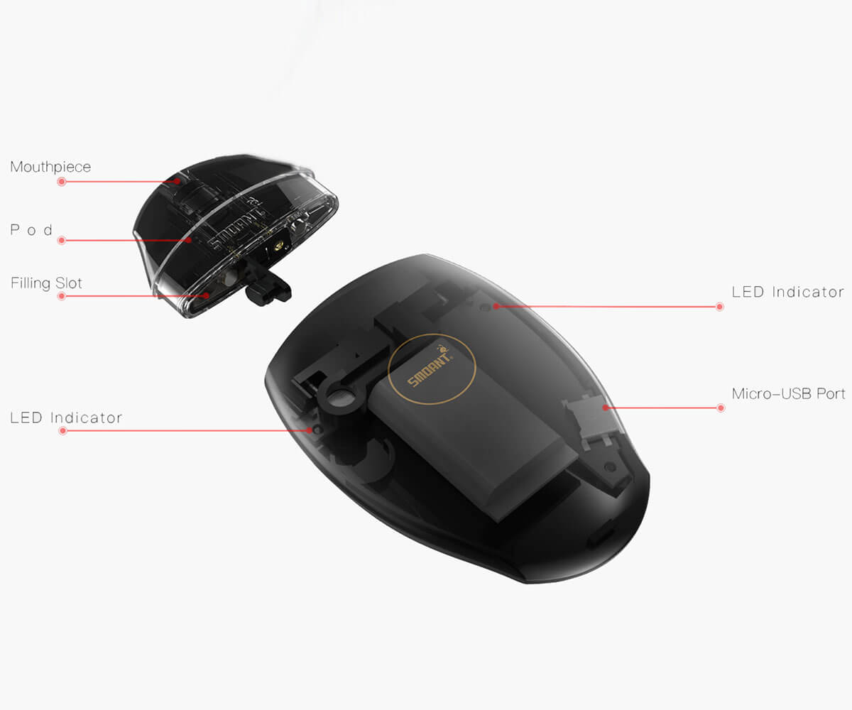 Ein gut zu erreichender USB – Port wird zum Aufladen der verbauten 370mAh Akku – Kapazität genutzt. Ohnehin ist es ein sehr benutzerfreundliches Pod – System, bei dem alle Bedien/Nutz – Elemente komfortabel erreich – oder austauschbar sind. Durch den verbauten Chipsatz wurden diverse Sicherheiten installiert, die für den Schutz beim Laden und Nutzen sorgen.