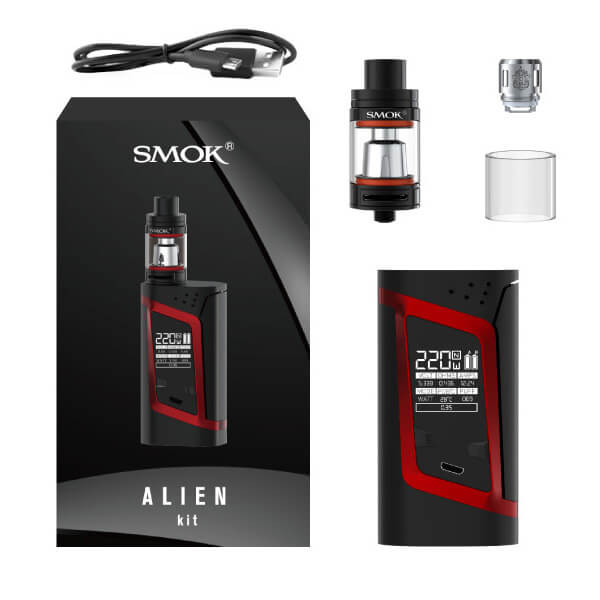 Das SMOK Alien Kit besteht aus dem Alien 220 Watt Mod und dem TFV8 Baby Beast Verdampfer. Akkuträger und Verdampfer bilden hier eine formschöne und neumorderne Einheit.