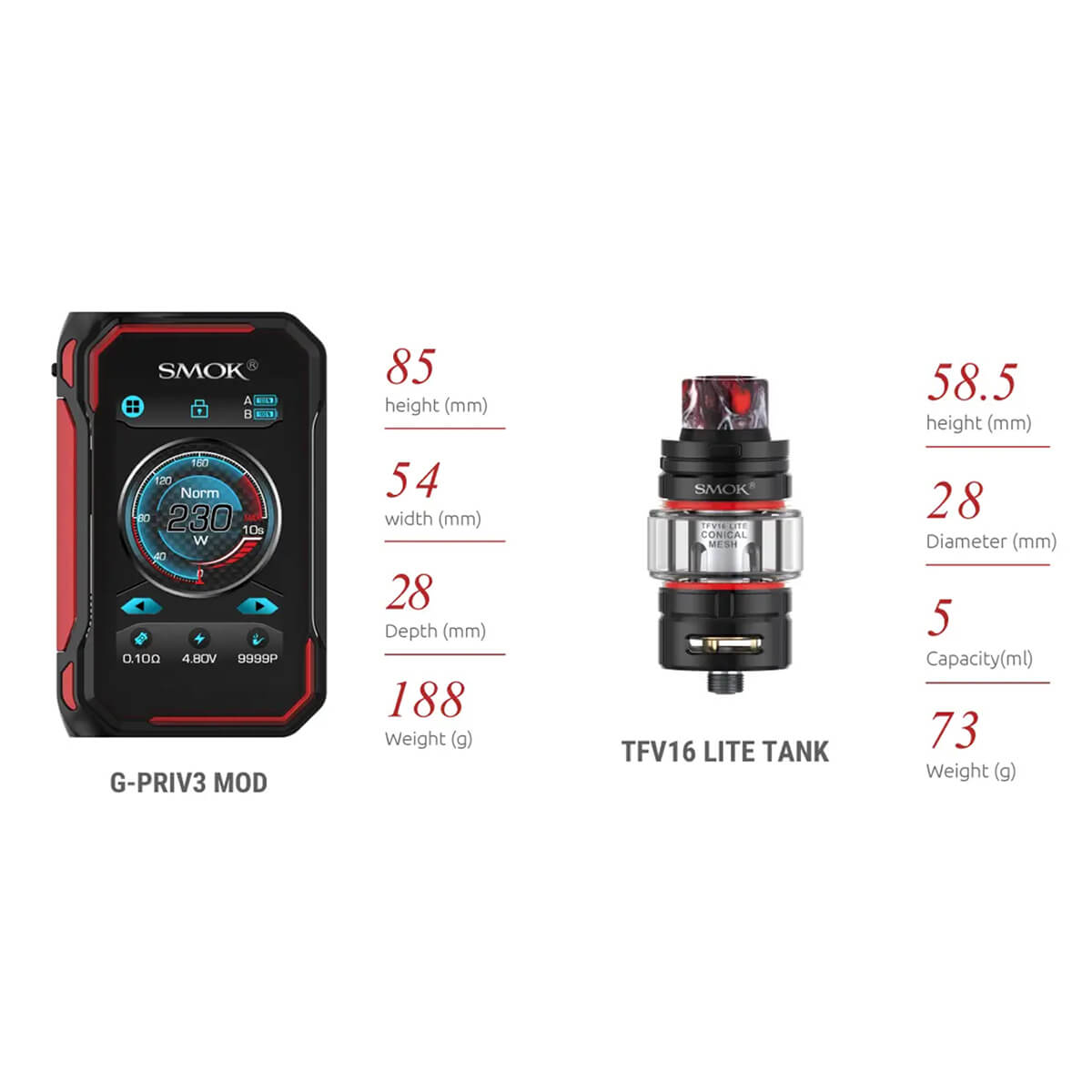 Das G-Priv 3 Kit von SMOK ist ein E-Zigaretten Komplettsystem, bestehend aus dem G-Priv 3 Akkuträger und dem TFV16 Lite Tank.