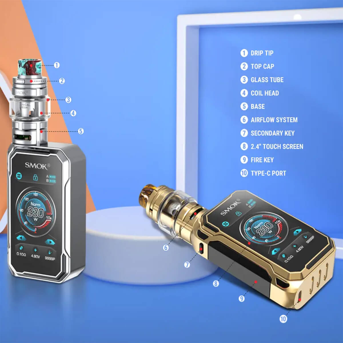 SMOK blieb auch bei dem G-Priv 3 Kit dem gewohntem Design treu. Dank ansprechender Sonderfunktionen (z.B. Vorheizen / My Mode / Puff Settings / Schnellfeuerung / Bildschirmsperre) wird das Vapen mit diesem Kit zu einem vergnüglichen Erlebnis.