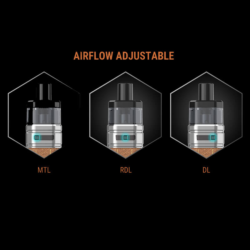 On Top wurde ein Schieber positioniert, mit dem sich die Öffnung der Airflow einstellen lässt. Man kann von MTL zu RDL oder zu DL mit diesem Regler Switchen.