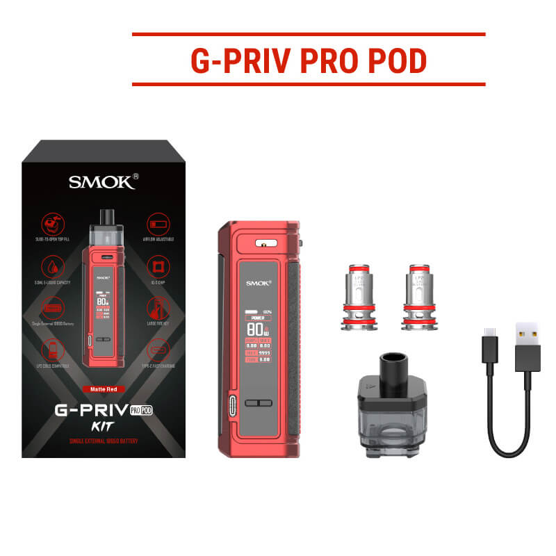 SMOK startet voll durch und bringt mit dem G-Priv Pro Kit ein neues Pod-System auf den Markt, dem es an nichts fehlt. Er ist die überarbeitete Version des G-Priv Pod Kits, beim dem technische Performance auf ein zeitlos-modernes Design trifft.