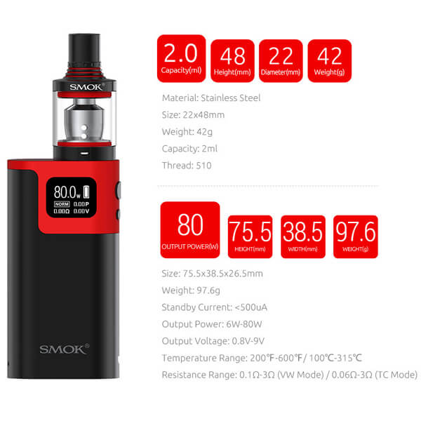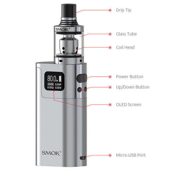 Der SMOK G80 Mod benötigt einen wechselbaren 18650er Akku, welcher nicht im Lieferumfang enthalten ist. Der Akku kann im Gerät über den Mini USB-Anschluss geladen werden. Das Dampfen ist beim G80 Mod sowohl im Watt- als auch im Temperaturmodus möglich.