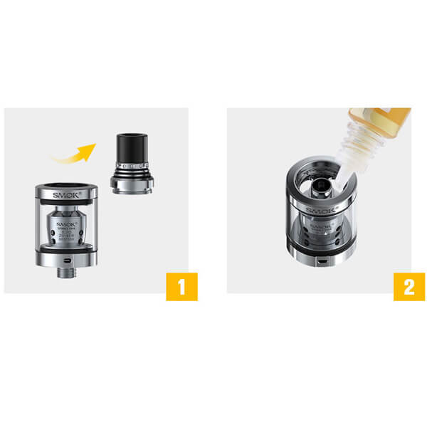 Der Verdampfer ist ganz leicht von oben befüllbar (Topfill), indem man die TopCap mit leichter Drehbewegung abzieht und das Liquid in die seitlich dafür vorgesehene Öffnung einfüllt.