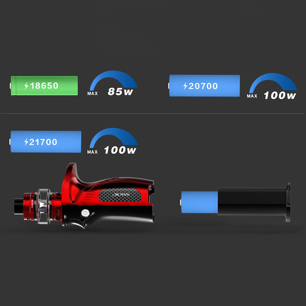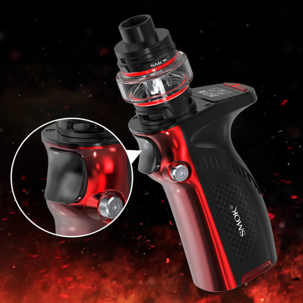 Um das Set würdig zu vervollständigen, kombiniert SMOK den MAG Grip Mod mit TFV8 Baby V2 Verdampfer, der bereits bekannt und in aller Munde ist. Er verwendet das gesamte Sortiment der V2 Verdampferköpfe und bringt zusätzlich die neuen Coils S1 und S2 mit, für noch mehr Vielfalt. Die Bottom Airflow lässt sich beliebig regulieren und unterstützt den Verdampfer-Kopf bei der Entwicklung von Geschmack und Dampf. Ein sattes Tankvolumen von 5ml wird problemlos via Topfilling mit Liquid befüllt.