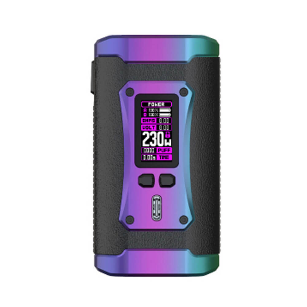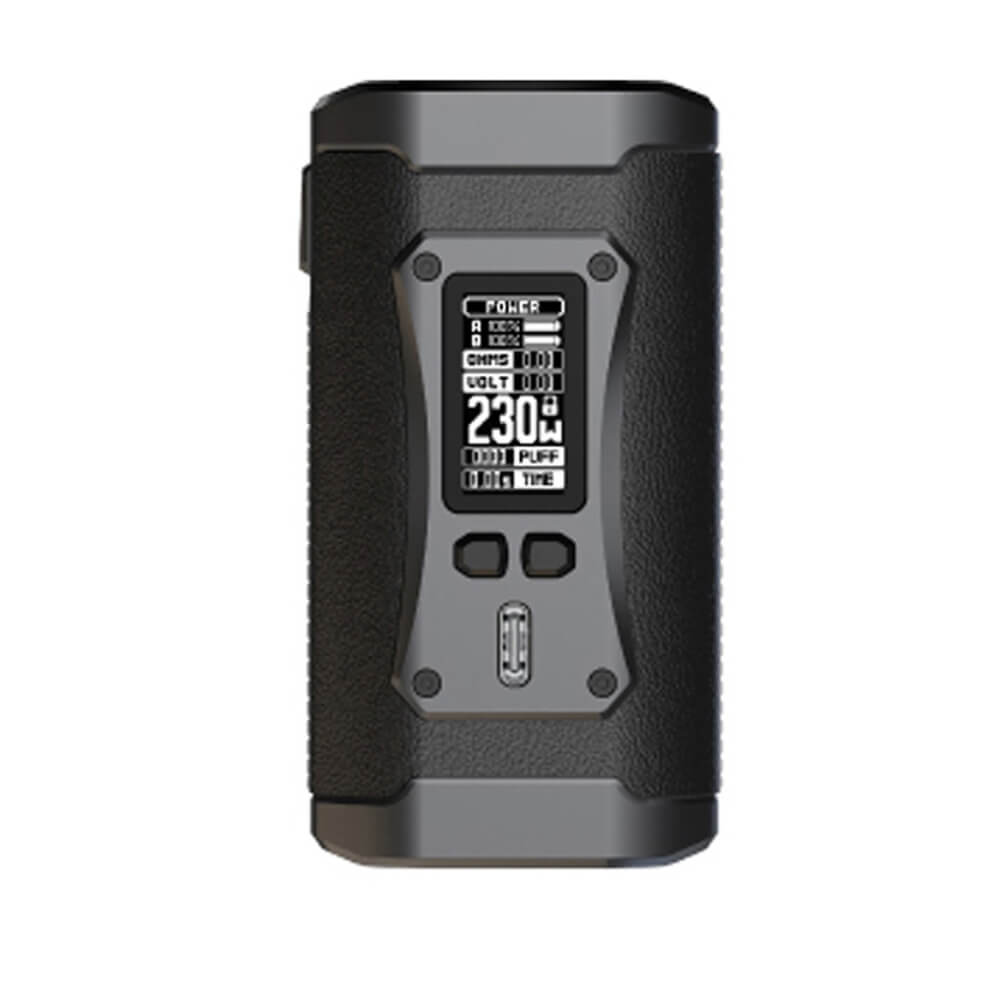 Im Inneren ist der neue IQ-S Chipsatz verbaut, der für einen sorglosen Gebrauch sämtliche Schutzschaltungen beinhaltet und mit dem im VW / TC-Mode bis zu 230 Watt (1.2V-8.2V) gearbeitet werden kann. Der Widerstandsbereich reicht von 0.05 Ohm bis 2.5 Ohm.