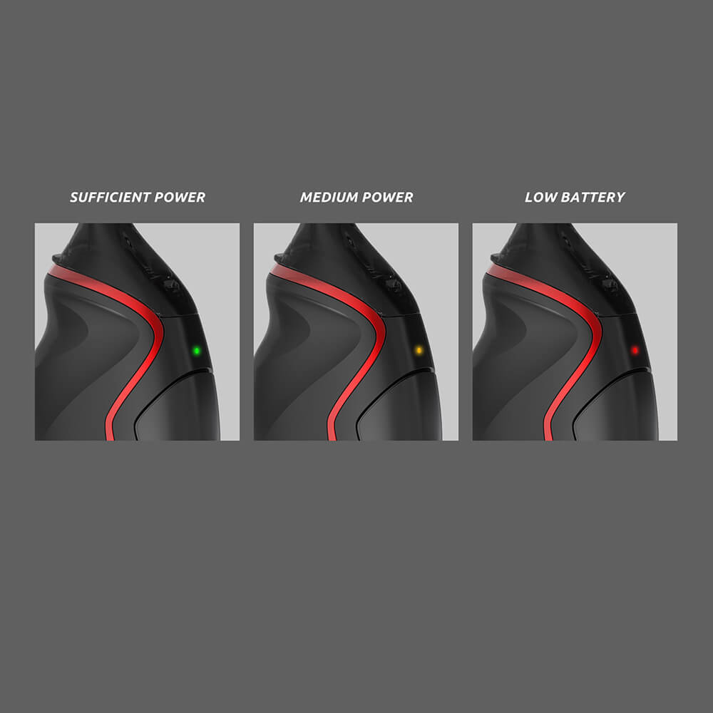 Ausstaffiert wurde das Starter Kit mit einem verbauten Akku, mit einer Kapazität von 1800mAh. Unterhalb des Feuertasters befindet sich ein kleines LED-Licht, welches durch ein zweimaliges Drücken des Keys ein-und ausgeschaltet wird. Diese LED-Beleuchtung übermittelt Informationen zum aktuellen Batterieladestandes (Rot: unter 30% / Orange: 30%-70& / Grün: 70%-100%).