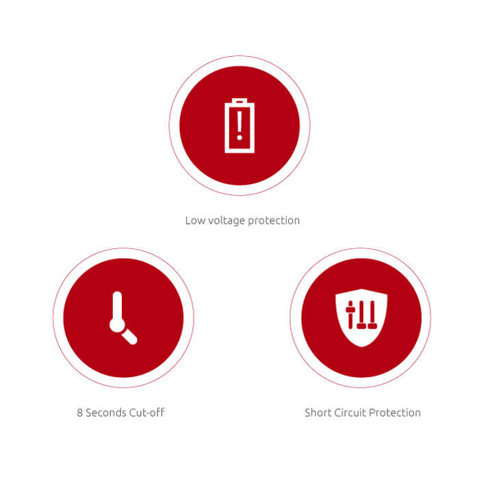 Ein zusätzlicher angenehmer Aspekt dieser E- Zigarette ist, dass mehrere Sicherheitssysteme installiert wurden um für ein gewisses Maß an Schutz beim Vapen und Laden zu erhalten.
