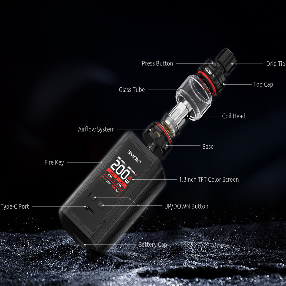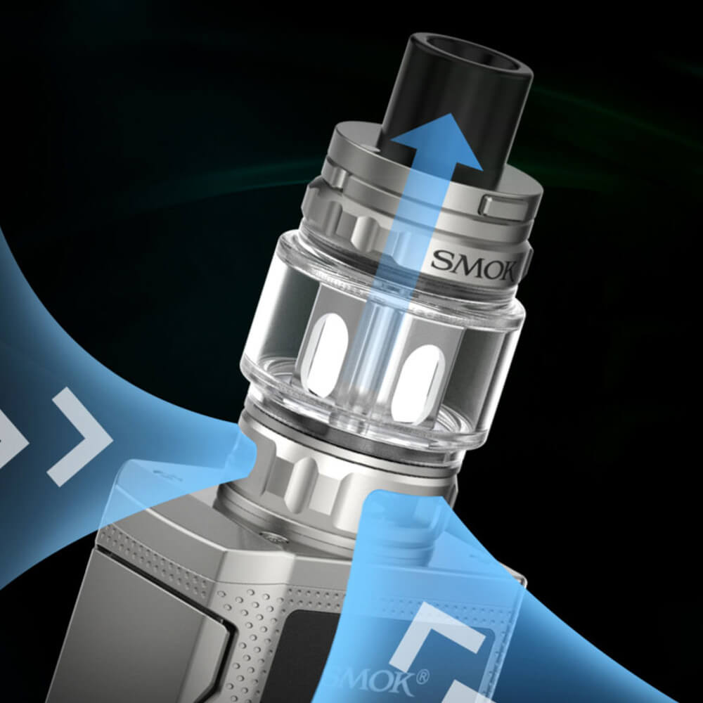 Eine perfekte Einheit bildet der Akkuträger mit dem TFV-Mini V2 Tank, der ein sattes 5ml Füllvolumen mitbringt, welches mühelos über das Topfilling (Push to Open) betankt wird. Eine ganze Reihe an Verdampferköpfen steht einem zur Verfügung, welche allesamt astreine Geschmackserlebnisse abliefern und für ordentlichen Dampf sorgen. Vom Boden aus steuert man mit der Airflow passgenau den Zugwiederstand.