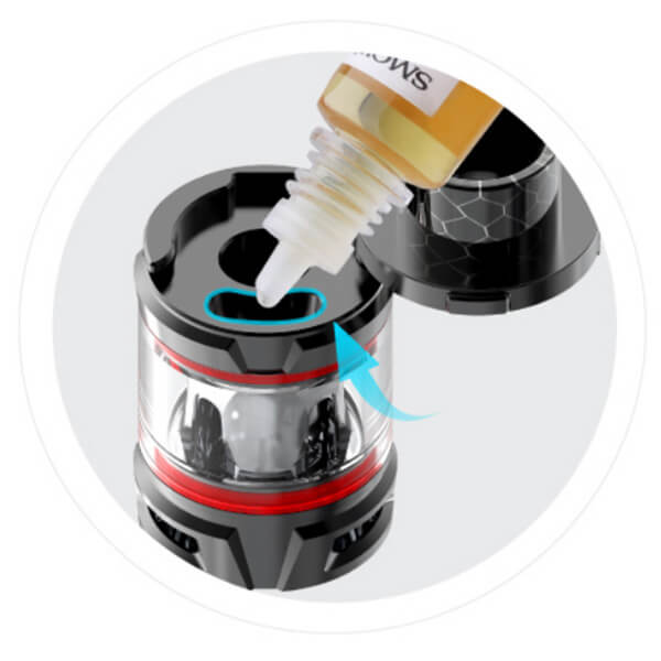 Verbunden wird der Mod mit dem TFV-Baby V2 Verdampfer, der mit einem 5ml Füllvolumen ausstaffiert wurde. Betankt wird dieses Volumen durch das bewährte Top-Fill-System, zügig und ohne Schmierereien. Die V2 Verdampferköpfe kommen hier zum Einsatz. Diese Coils haben einen Widerstand von 0.15Ohm – 0.2Ohm / 50W – 140W und werden außerdem in drei unterschiedlichen Farben angeboten. Die Bottom Airflow lässt die Frischluft optimal zirkulieren und kann nach Belieben ausgerichtet werden.