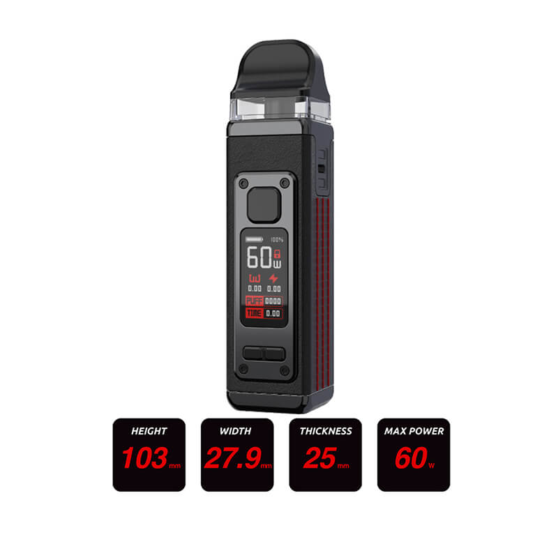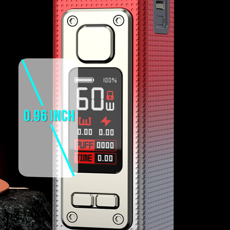 Für ein längeres Dampfvergnügen sorgt der verbaute 1650mAh Akku, der über das mitgelieferte USB-C Ladekabel zügig und effizient wieder geladen werden kann. Der integrierte Chipsatz schafft Ausgangsleistungen im VW-Mode zwischen 5W-60W / 0.8V-4.0V, bei Widerständen von 0.2 Ohm und 2.5 Ohm. Die Bedienung lässt keine Fragen offen und alle vorgenommenen Einstellungen und Werte können einwandfrei vom 0.96 Zoll TFT-Farbdisplay abgelesen werden.