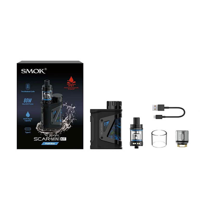 Das Scar Mini Kit von SMOK ein robustes, kleines „to go-Kit“, welches in vier ansprechenden Farben zu haben ist. Zusätzlich kann ihm nach der IP67-Norm weder Staub, Wasser noch leichte Stöße etwas anhaben. Einige Schutzschaltungen (Kurzschlussschutz / 5 Klick Automatik / Überhitzungsschutz / Tiefenentladungsschutz) sorgen für Sicherheit.