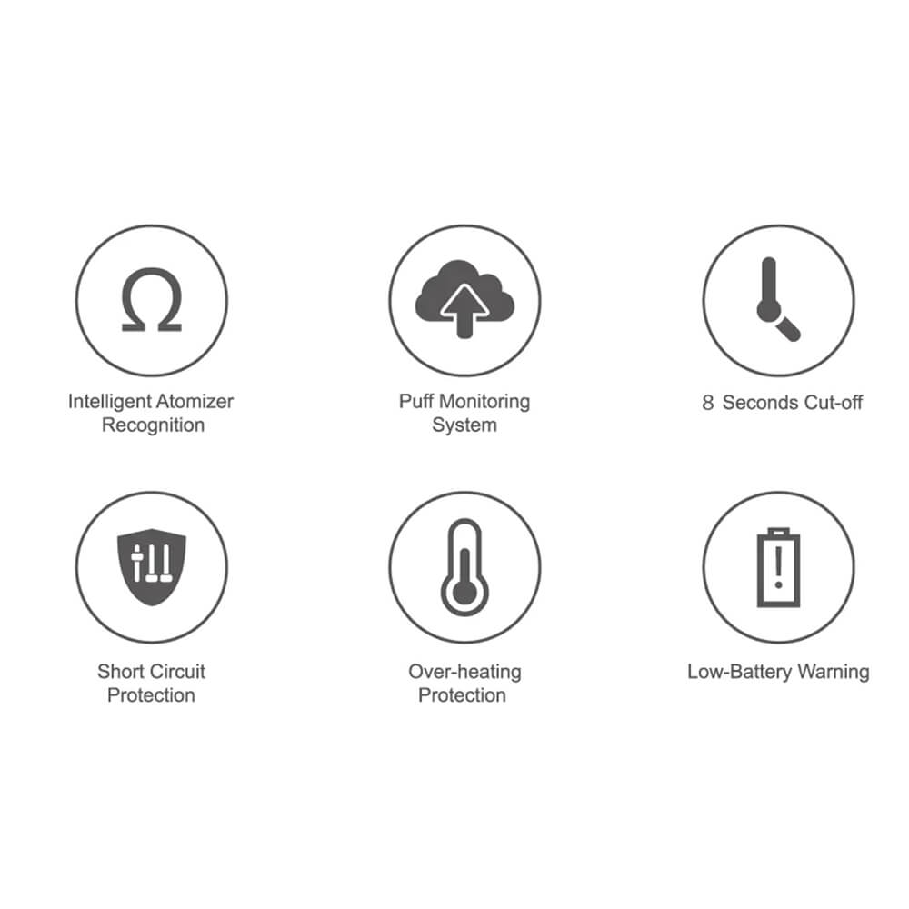 Da der P5 mit einem separat erhältlichen 18650er Akku betrieben wird, ist er nun etwas größer (117.6mm x 35.8mm x 28mm). Geladen wird die Zelle über einen USB Ladeanschluss vom Typ C. Mit nur einem Knopf ist die Bedienung besonders einfach gehalten. Auf dem großen 0.96 Zoll Farb-Display können alle vorgenommenen Einstellungen abgelesen werden.